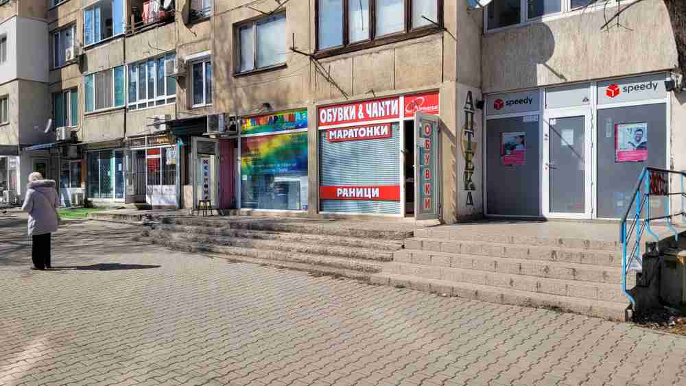 Магазинът се намира в партерния етаж на осем етажен жилищен блок