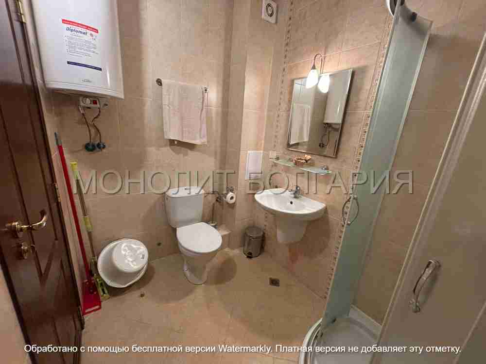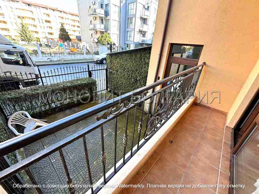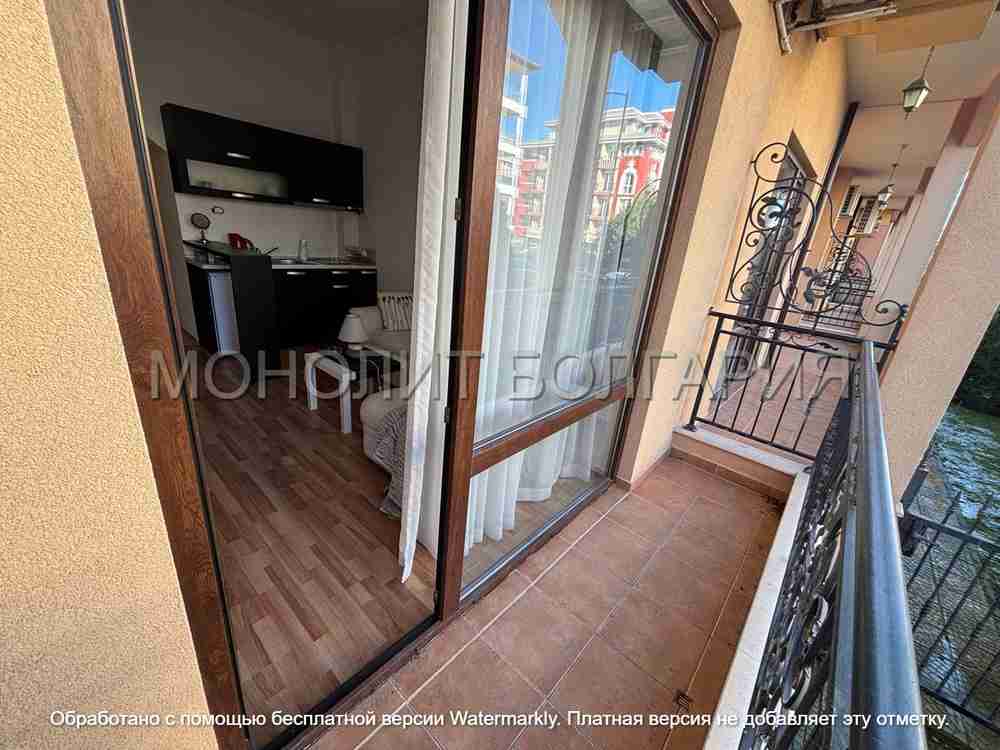 Описание: Предлагаме за продажба студио апартамент в Слънчев бряг, част от комплекс "Diamant Residence". Намира се на първи етаж (висок сутерен) и предлага 34,5 кв.м площ. Напълно обзаведен е, разполага с коридор с просторен гардероб, голяма баня с душ и самостоятелен двор под балкона. Това компактно и добре поддържано студио апартамент е подходящо за семейство от трима души и е отличен имот за отдаване под наем! Комплексът споделя терен с хотела. По време на празничния сезон живущите имат достъп до бюфета на ресторанта срещу символична такса. Собствениците имат достъп и до два открити басейна с детска зона и бар, забавления, спа център, охрана и видеонаблюдение. Cacao Beach е само на 350 метра. Такса поддръжка: 320 евро/годишно. В сила е Акт 16. | |