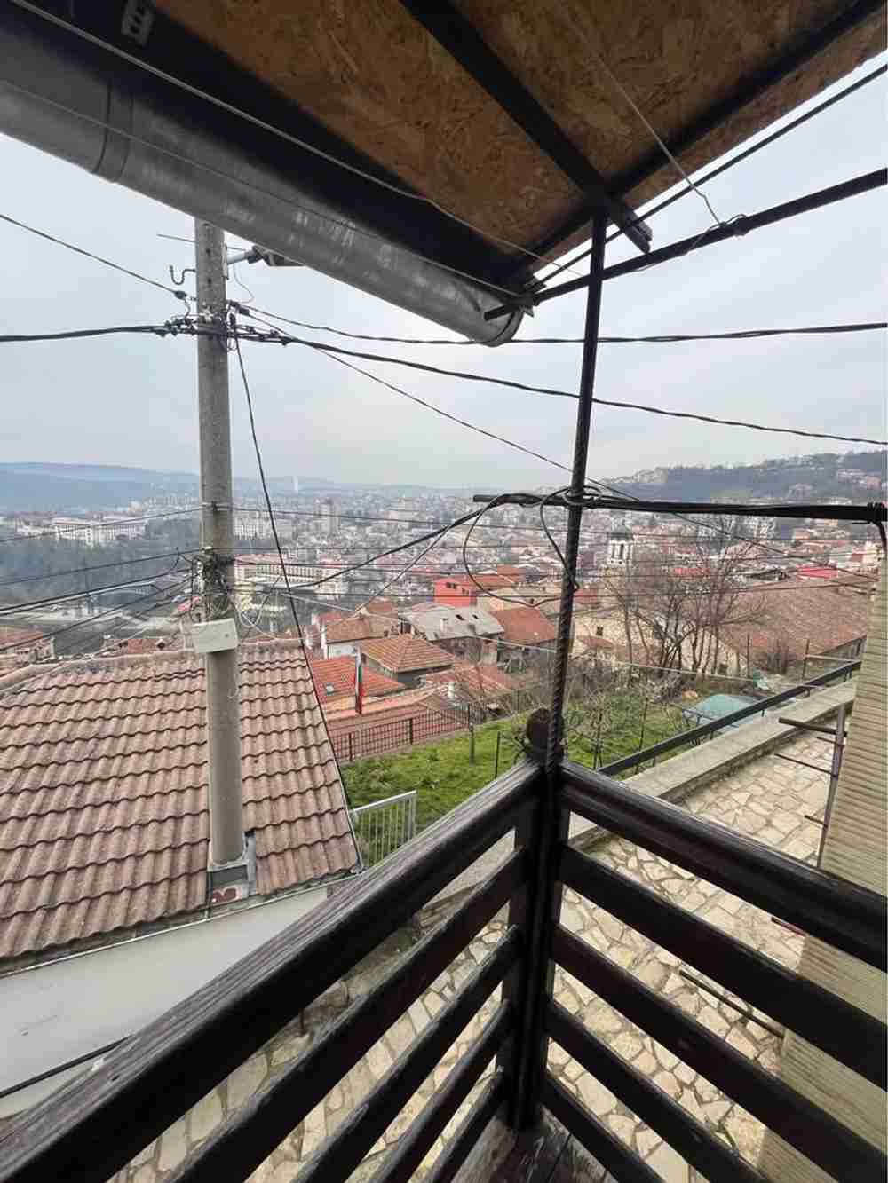 Описание: Агенция за недвижими имоти ”ДАНИ КОНСУЛТ” предлага за продажба двуетажна къща с малък двор в гр. Велико Търново, кв. ”Варуша”. От имота се открива красива панорамна гледка към целия град. Сградата е на два етажа, с два отделни входа, строителство камък/тухла/гредоред и има следното разпределение: първи етаж/45 кв.м./ се състои от кухня, спалня, килер, баня с тоалетна и веранда; Втори етаж /75 кв.м./ се състои от кухня, дневна, две спални, баня с тоалетна, килер /преустроен на мокро помещение/ и тераса с панорамна гледка. Вторият етаж е ремонтиран- външна изолация, PVC дограма, ремонтиран санитарен възел. Първият етаж се нуждае от осъвременяване. Към къщата има малък двор /55 кв.м./, в който е изградена беседка за почивка и е облагороден с асми и вишна.