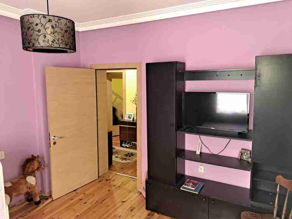 І етаж- антре, спалня, хол с тераса, баня и тоалетна. Този етаж е ремонтиран- ПВЦ дограма, дюшаме в стаите- лакирано, баня с плочки, камина с водна риза;