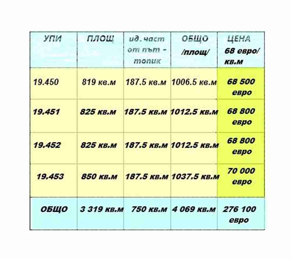 • пакетна продажба: 65 €/кв.м
