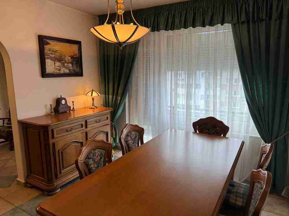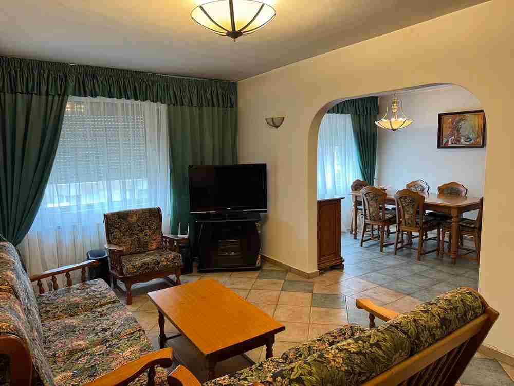 Вградена кухня масив с всички електроуреди, вносни масивни мебели, PVC дограма, външни щори, нов климатик в дневната.