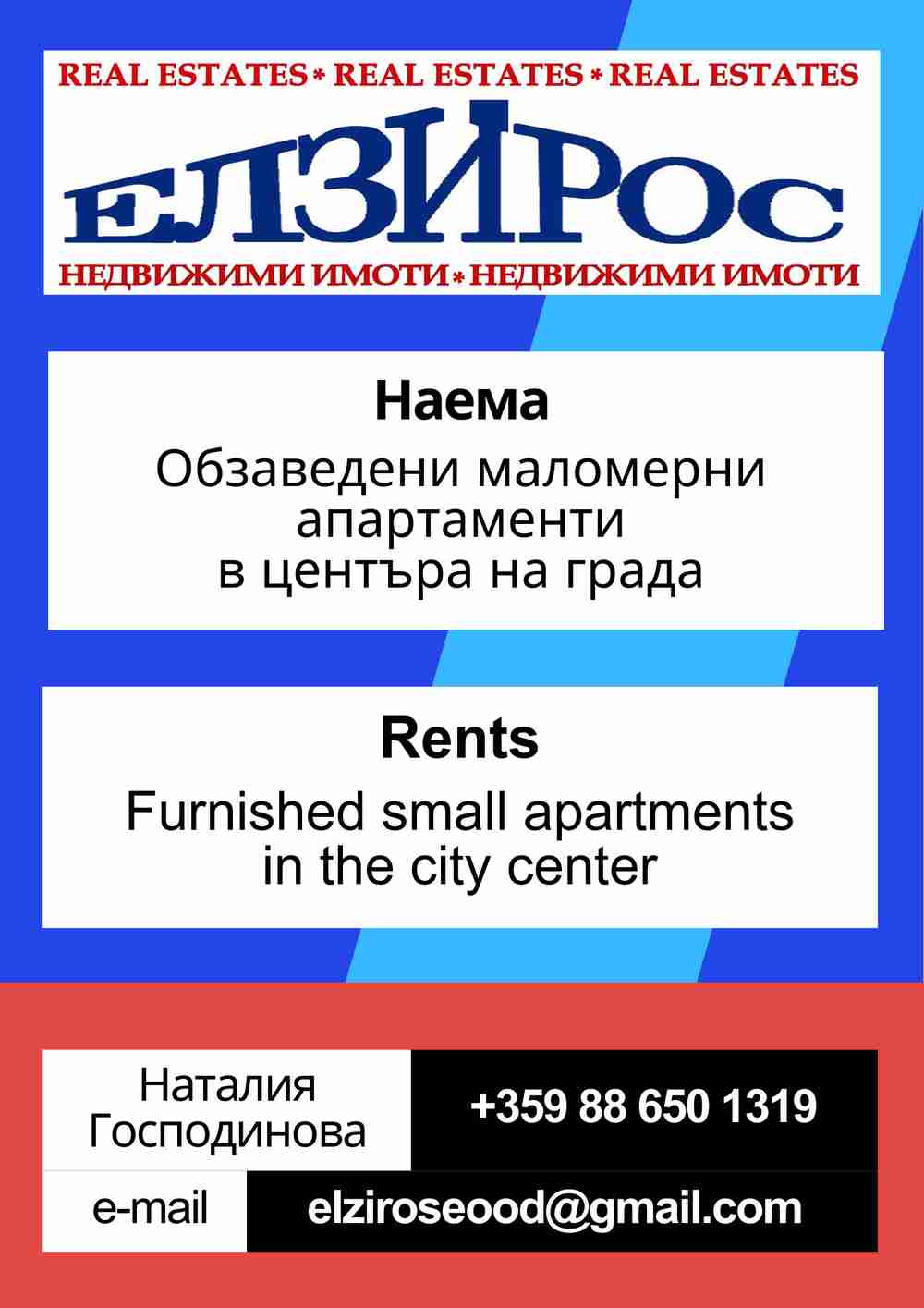 | Contacts: | Agence: ЕЛЗИРОС ЕOOД Pays: Bulgaria Localité: гр.Кюстендил Adresse: ул. Демокрация №37, ет. 1, офис 2 Contacts:: 0886501319 E-mail: elziroseood@gmail.com |