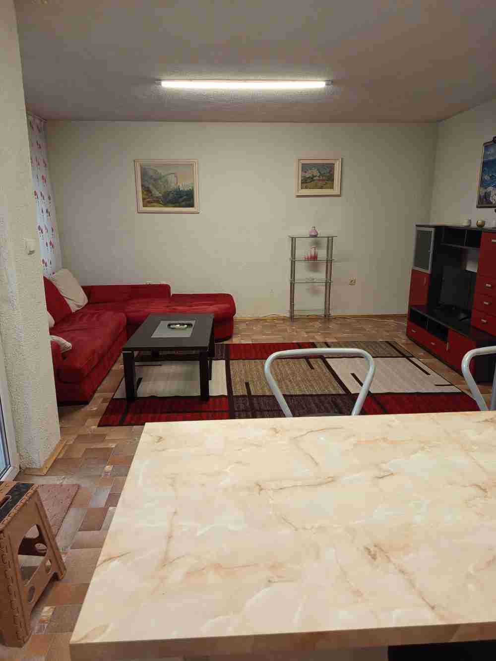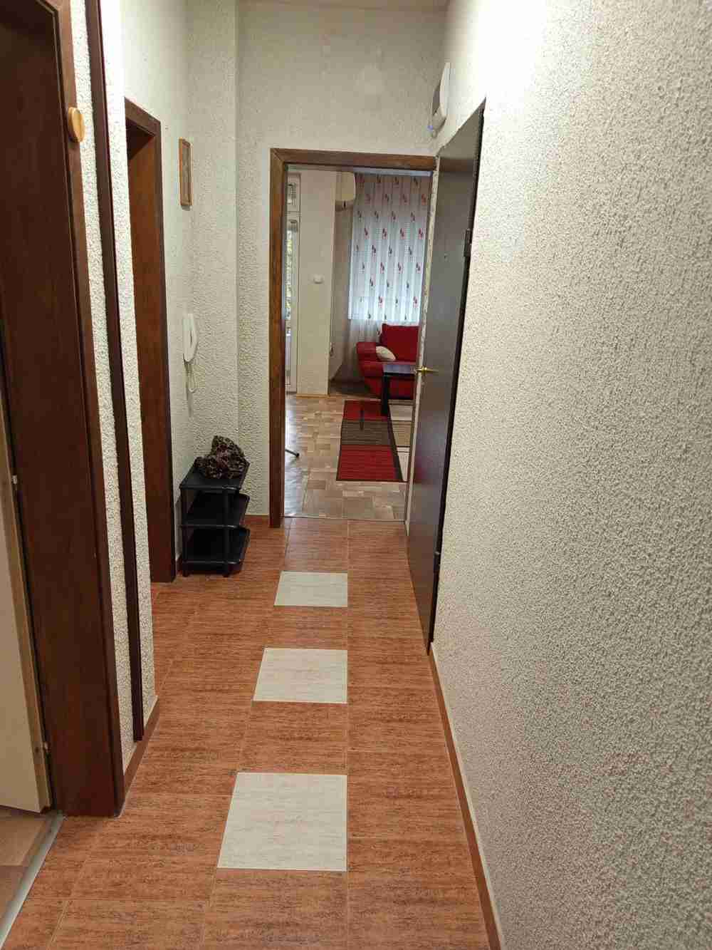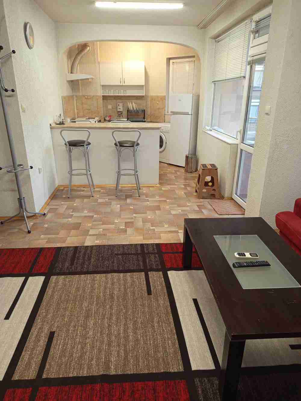 Description: IV CONSULT propose à la location un appartement T4 (3 pièces) avec dépendance, situé dans la partie est de Stara Zagora, près de Tchaïka, chez Mme Ivan Vazov. L'appartement se trouve au 1er étage d'un immeuble sécurisé, exposé sud-est. Il comprend un séjour avec coin cuisine séparé, deux chambres, une salle de bains avec WC séparés et deux terrasses. Il est entièrement meublé et équipé. Loyer : 350 €.